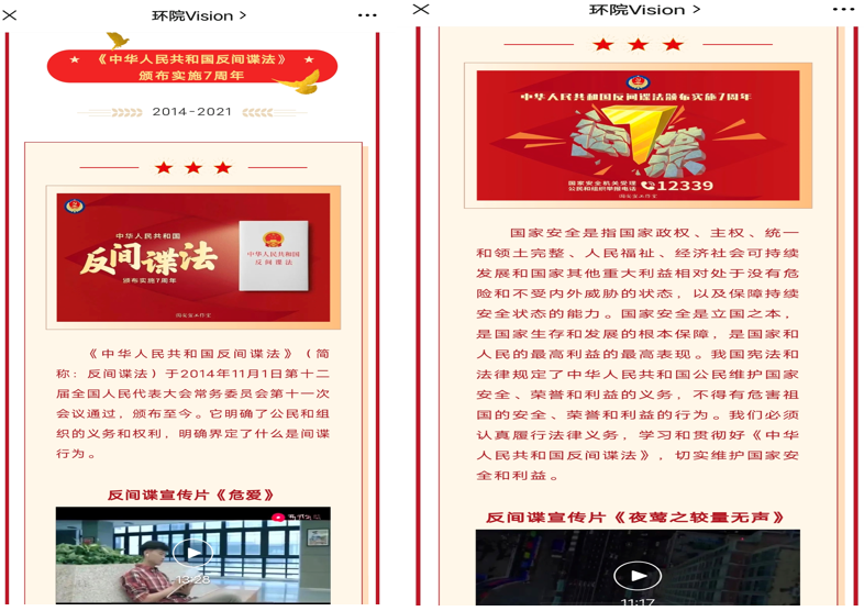 2021年11月1日是《中华人民共和国反间谍法》颁布实施7周年。为进一步提高全院师生维护国家安全及反间防谍意识,yL23411永利集团组织开展《中华人民共和国反间谍法》颁布实施纪念日宣传教育活动。
