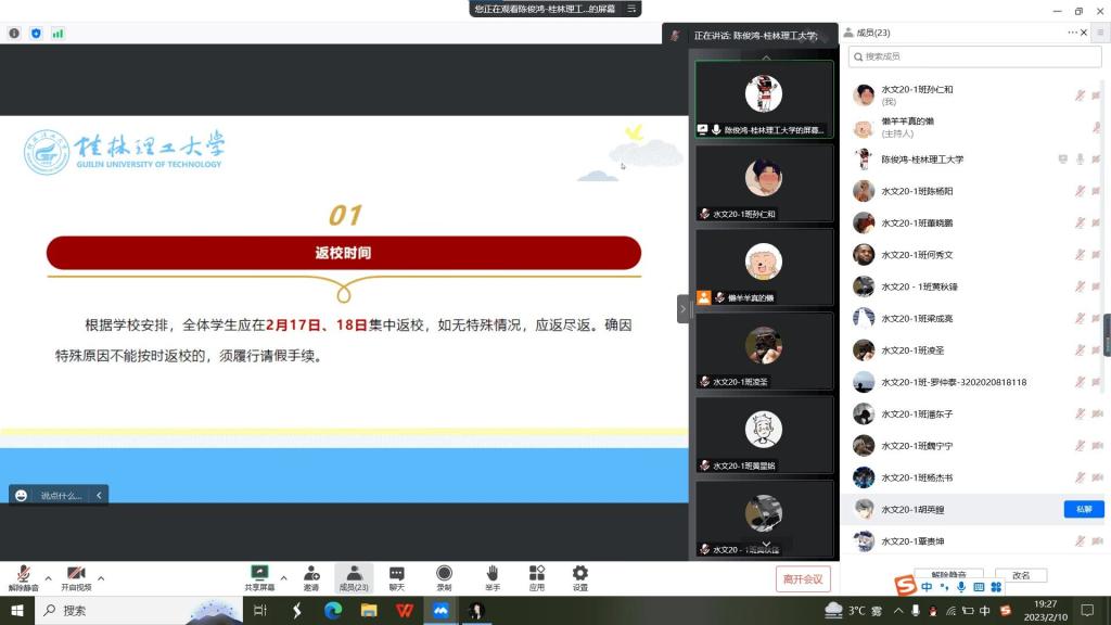 为落实学校2023年春季学期开学工作相关部署,全力做好学生返校及新学期各项工作,确保春季学期开学平稳、安全、有序,2月9日-2月11日,我院千名学子共上2023年春季学期开学前第一节班会课。班会由各班班主任主持召开,年级辅导员以及全体学生参加。
