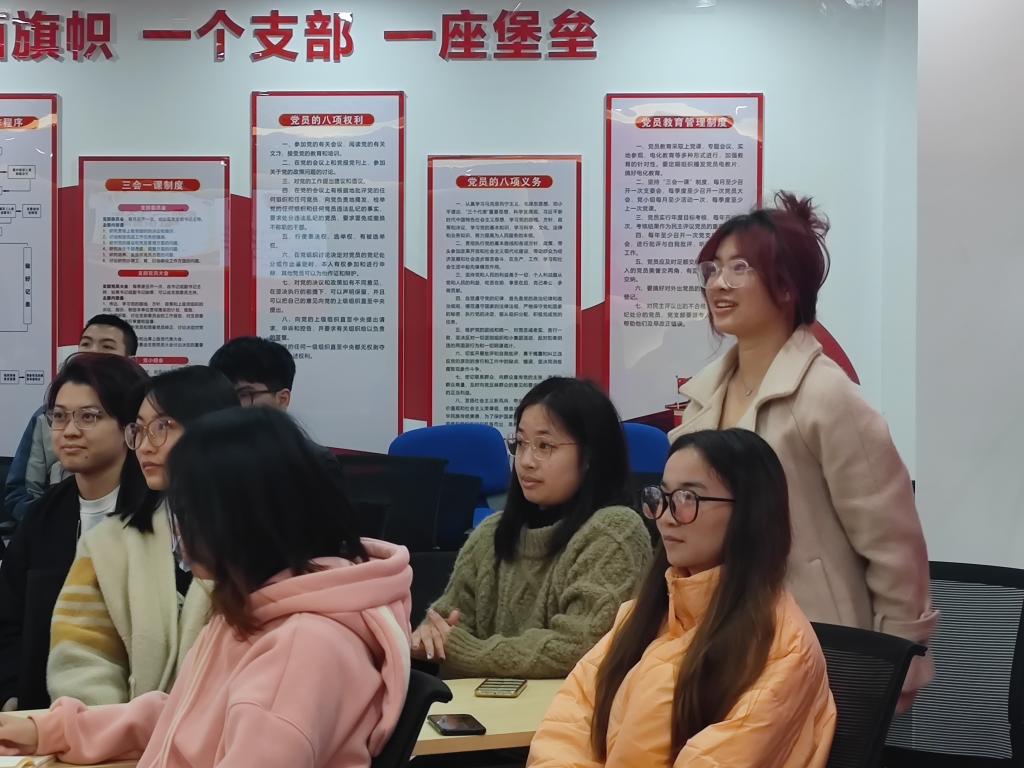 为深入学习宣传贯彻党的二十大精神,引领我院广大青年学生坚定理想信念,坚定不移听党话、跟党走,切实把思想和行动统一到党的二十大精神上来,争做有理想、敢担当、能吃苦、肯奋斗的新时代好青年。2023年2月24日上午,学院学工办唐源江老师在“明园”一站式学生社区思政大讲堂,以“青春践行二十大”为主题进行了学院示范主题班会。学院党委书记姜子亮、副书记郝文佳及全体辅导员、班主任代表出席示范主题班会。