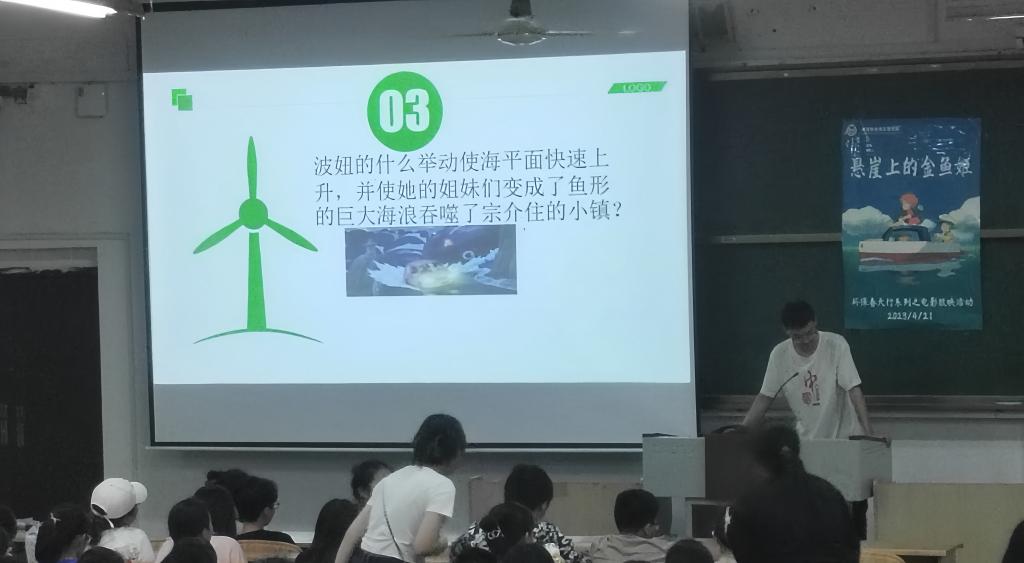 本次活动除了观影之外,还安排了问答环节,同学们积极回答问题,获得我院精心挑选的多肉植物。参与本次活动的同学还表示我院的活动别出心裁,颇具特色,挑选的电影也具有深刻的教育意义。在影片的开头向我们展示了人类排进大海里数不尽的垃圾,而波妞也是因为卡在一个罐子里才上的岸,我院旨在通过举办观影活动,让更多的同学意识到人类与自然要和谐共处,一个代表着人类所有美好精神的男孩宗介,与一个代表自然之美的女孩波妞,彼此相亲相爱,人与自然,和谐共生。