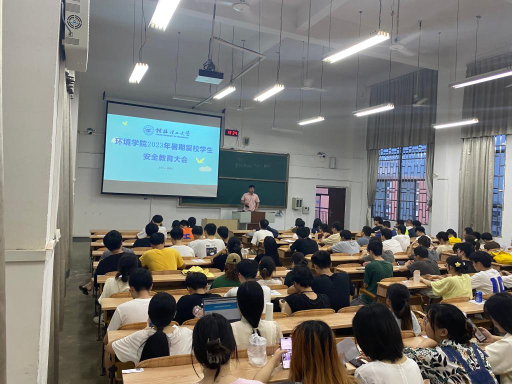 为进一步加强学院暑假留校学生安全防范意识,提高同学们的避险能力,确保留校学生度过一个愉快、安全、有意义的假期。近日,学院在雁山校区06508教室,组织开展了环境学院2023年暑期留校学生安全教育大会。