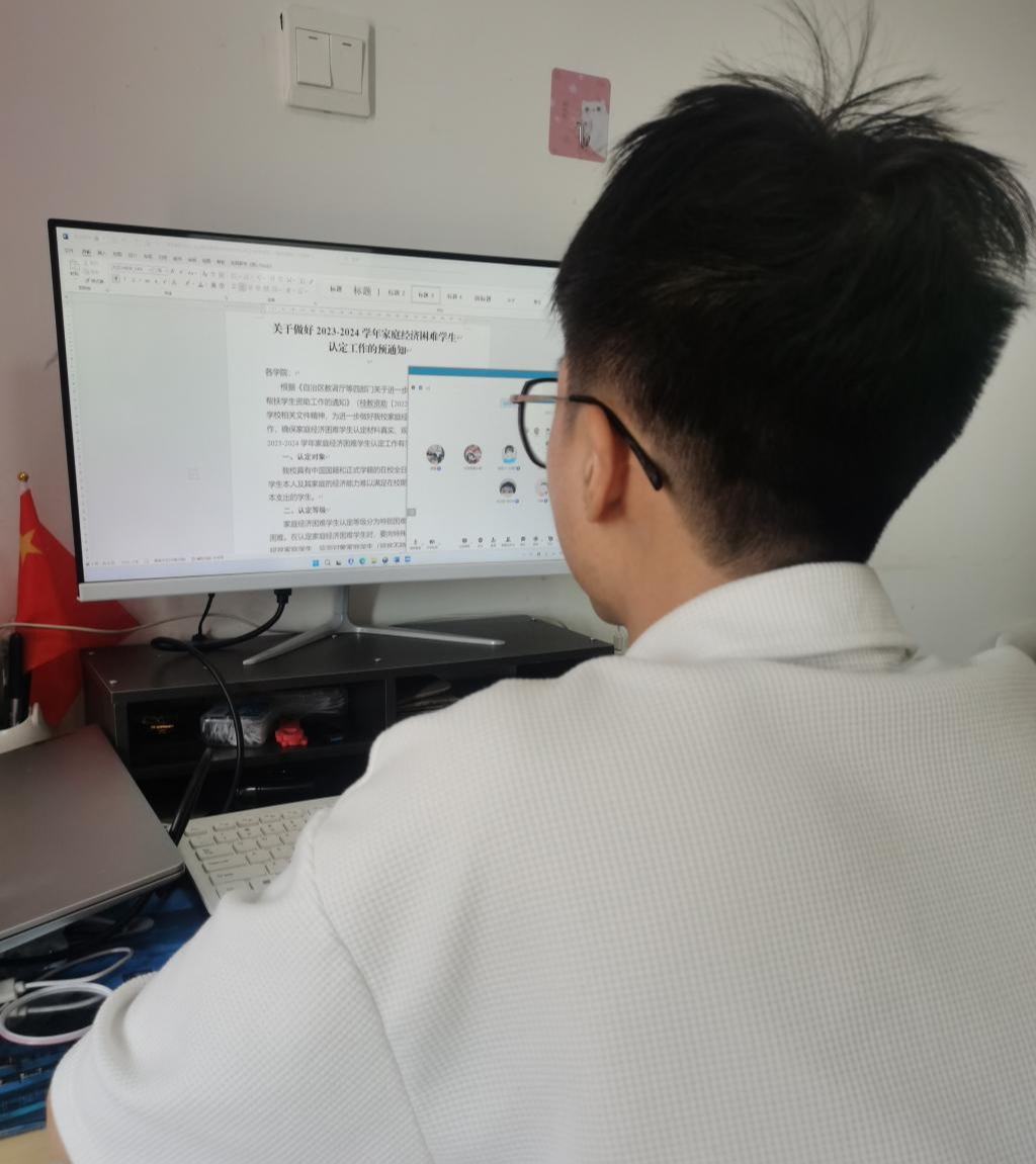 为加深学院与2023级新生家庭之间的联系,为家困生提供更多的关怀和支持,8月29日,我院负责资助专项工作的辅导员董翼结合学院新生家庭实际情况,开展了一次家困生线上云家访活动。