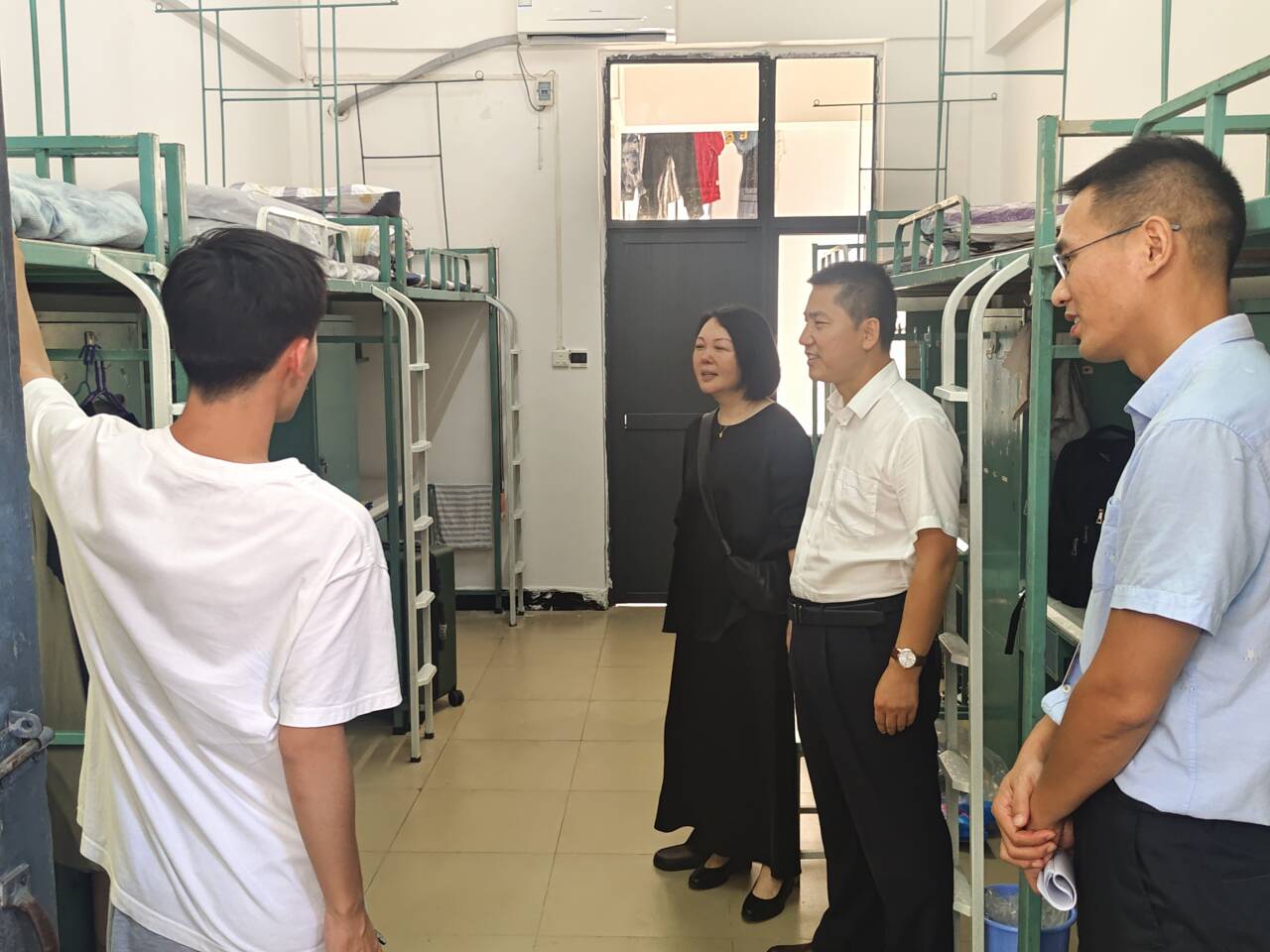 9月7日下午,我院党政主要负责人带队深入迎新报到点与新生宿舍开展走访慰问活动。在走访中,领导们关切地询问新生报到注册、入住宿舍、生活保障等情况。行政主要负责人强调,对于刚刚踏入大学校园的新生而言,一是要以积极乐观的心态适应全新的学习与生活环境;二是要时刻绷紧安全这根弦,高度重视用水、用电安全,提高防诈骗意识,确保自身的人身与财产安全;三是要对学校和专业充满信心,将全部精力投入到学习中,努力提升自己的专业素养和综合能力。