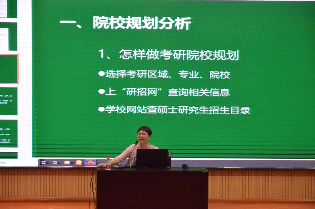 会议伊始,李楠老师向同学介绍本次会议主讲的两位老师,分别是杨秀前老师和柳青伟老师,接着,她告诉同学们考研一定要趁早,同学们需要把握住每一个重要的时间节点,并制定出考研时间规划,要求同学们在每一个时间点上都要聚精会神的去做好每一件事。随后,杨秀前老师向大家着重讲解数学这一科目近年来在考研中的占比情况,指出想要考取一个重点大学就必须渡过数学这一科目的难关,用适合自己的学习方法去学习数学会更有效,在做题方面,杨老师强调要边思考边做题,不能盲目的进行刷题。最后,杨青伟老师向同学们分享她对多个重点大学全面分析的成果,一一列举出适合我院各专业的各大高校,让同学们明确自己的目标,坚定信念,奋勇向前。