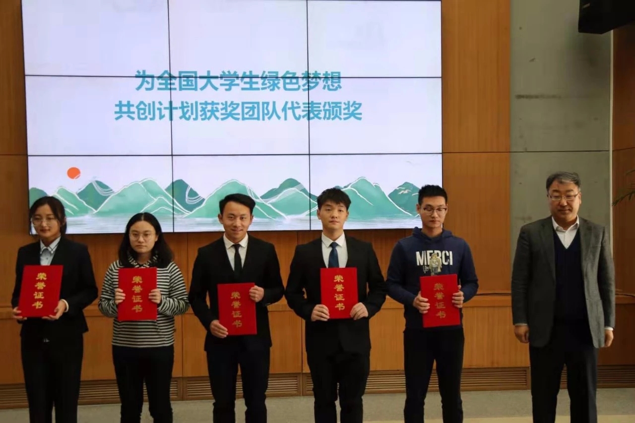 12月13日上午,由中国生态文明研究与促进会、中华环境保护基金会和北京林业大学联合主办的第五届全国大学生绿色梦想共创计划总结和表彰大会在北京林业大学召开,我院暑期社会实践“脱贫攻坚战役,建设生态资源”团队代表前往北京参加总决赛及表彰会。