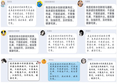 众志成城,汇聚青春力量。虽然不在防疫第一线的队伍当中,但19级给排水创新班的每一位同学心系武汉,心系中国。团支书号召全体支部成员,以“倡议图”、“短视频”等形式为中国加油,并发布在网络上,以此号召更多的人积极行动起来,凝心聚力,共同打赢这场特殊的战争。