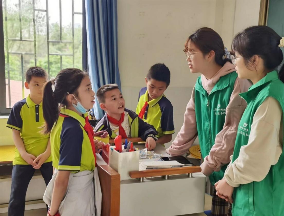 为深入学习贯彻习近平新时代中国特色社会主义思想和党的十九大精神,践行学习雷锋精神,弘扬“奉献、友爱、互助、进步”的志愿精神。2021年4月2日,我院与桂林市雁山区北芬小学联合举办了以“学雷锋,弘环保”为主题的小学支教活动。在学院的大力支持与北芬小学的积极配合下,本次活动取得圆满成功。