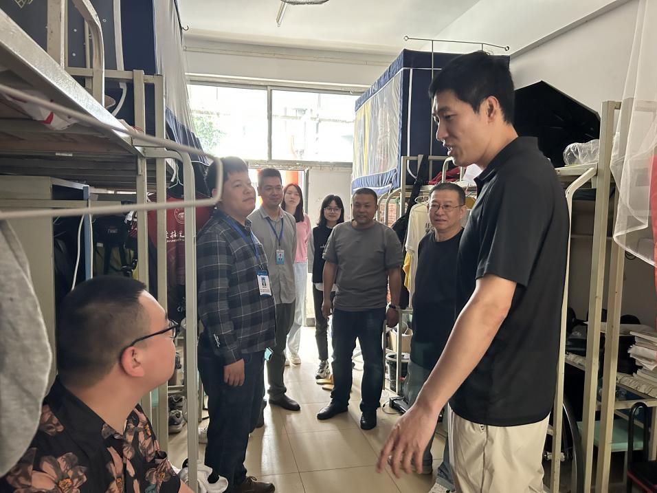 为切实做好“三月三”“五一”节假日期间实验安全和消防工作的部署要求,进一步落实火灾防控措施,坚决预防和遏制各类事故,保障全院师生的安全,4月20日,环境学院党委书记姜子亮带队对学院实验室、办公室、学生宿舍的消防安全隐患进行排查。