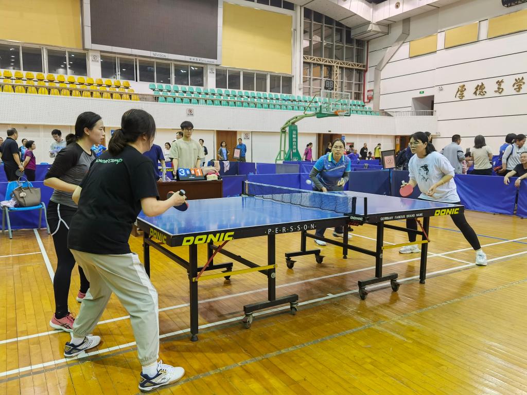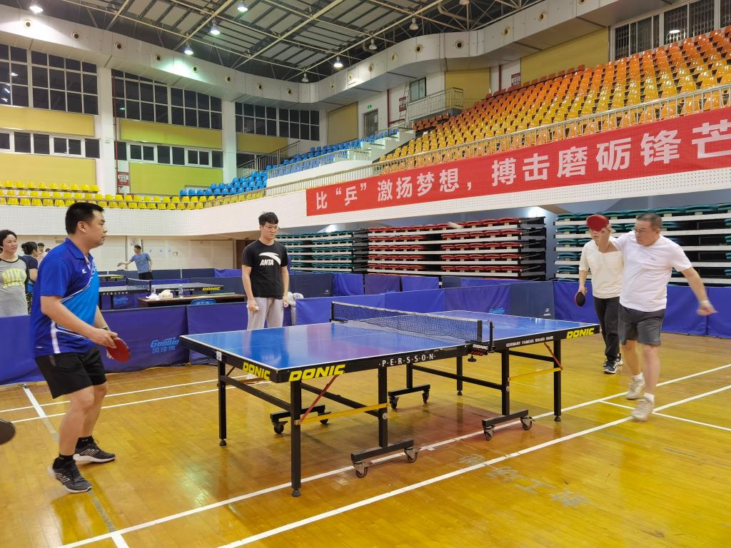 比赛共有全校23个分工会队伍参加,我院教职工选手们精神饱满、斗志昂扬、奋勇争先,充分发挥自己的水平,稳削防守、大板扣杀、频繁变线、声东击西,削、转、拉,尽显国球魅力,尽展环境学院风采。第一阶段小组赛异常激烈,乒乓球团体赛不仅需要具备娴熟乒乓球技能,还要具有良好的排兵布阵能力,这就需要各队知己知彼,才能收获田忌赛马的效果。队员们坚持认认真真地打好每一场比赛,争取更大的胜利。