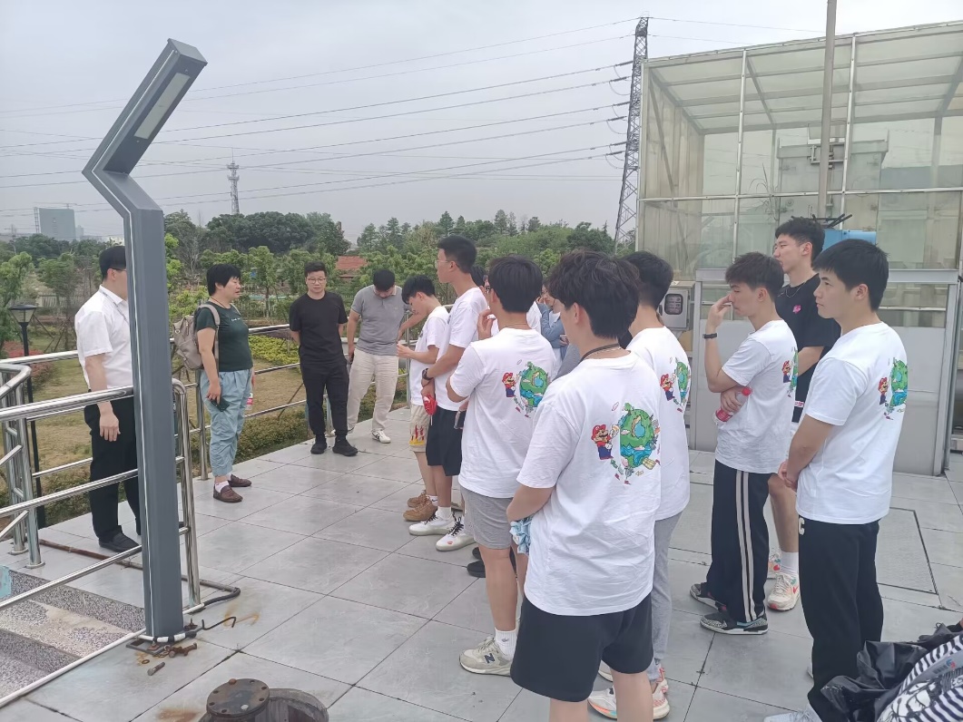 从中控智慧控制室出来后,同学们继续前往武汉市金银湖污水处理厂。金银湖污水处理厂负责人以及工作人员首先对我院老师和同学们的来访表示热烈欢迎,并对金银湖污水处理厂进行了详细的介绍。随后,工作人员带领师生们参观了污水处理厂的处理构筑物,并给老师和同学们详细地讲解了该厂的处理工艺流程以及处理构筑物的特点。
