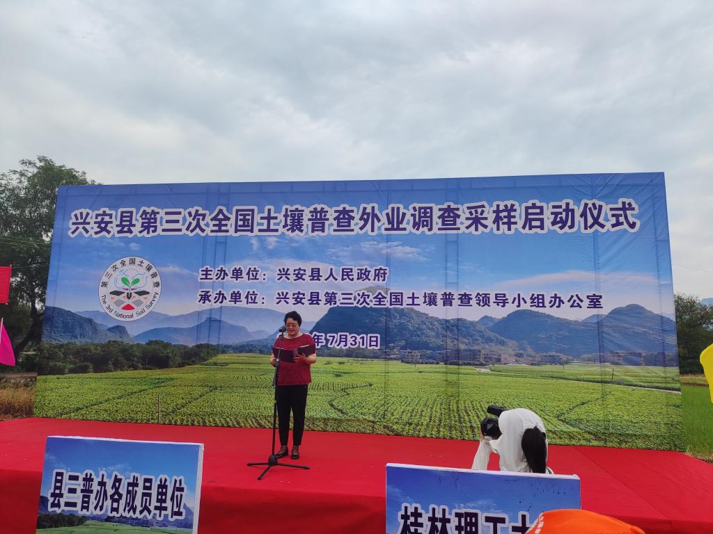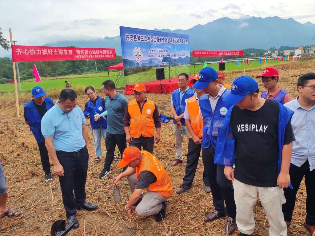 7月31上午,兴安县第三次全国土壤普查启动仪式暨外业采样技术培训会在兴安县的石埠村举行,兴安县政府各有关部门代表、当地质检人员和我校调查采样队成员出席。