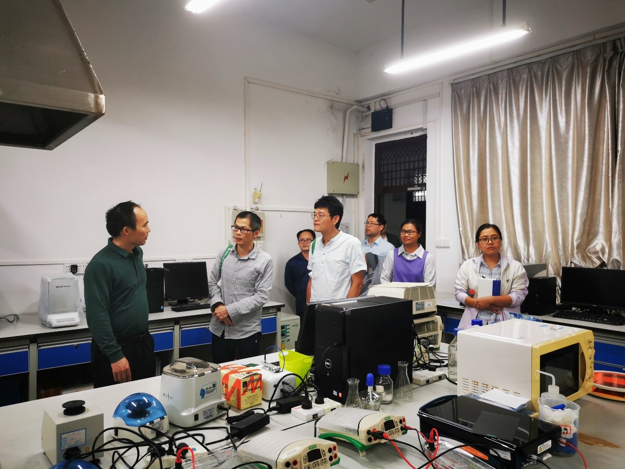 会上,黄亮亮副院长向各位嘉宾详细介绍了学院的发展历程、教学和科研情况。双方结合各自的研究、项目申报等方面开展了深入探讨,寻找合作的方向。随后,在环工中心实验室主任梁延鹏的陪同下,大家一起参观了水污染控制国家级实验教学示范中心、广西环境污染控制理论与技术实验室。