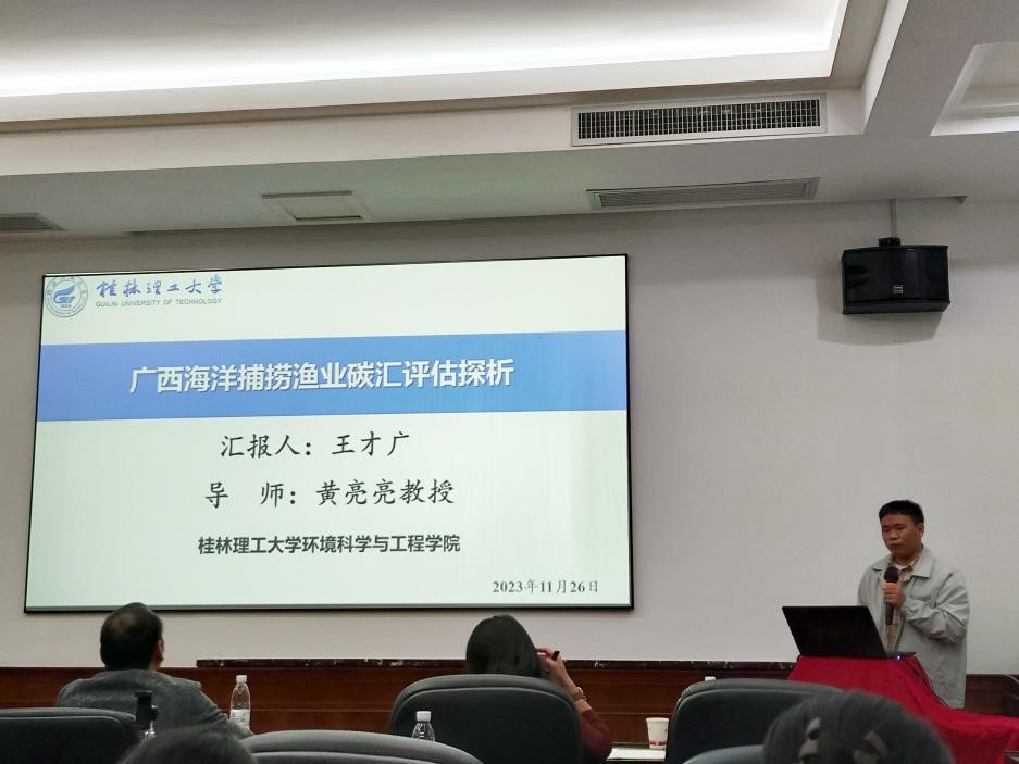 博士研究生王才广在“研究生论坛”汇报了题为《广西海洋捕捞渔业碳汇评估探析》的成果,向与会人员介绍了捕捞渔业在海洋碳汇中的重要作用,并对海洋渔业碳汇的可持续发展提出相关建议,以期为促进广西海洋捕捞渔业碳汇发展提供参考,为未来渔业增汇策略提供数据支撑。该同学的报告荣获“优秀报告二等奖”。
