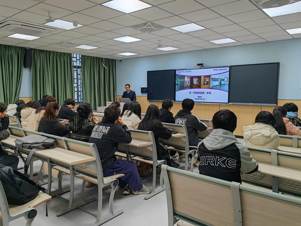 2024年1月11日上午10:20-12:00,在雁山校区05302教室,我校讲座教授、清华大学环境学院长聘教授、国家杰出青年科学基金获得者刘锐平教授为环境工程专业2021级本科生讲授《环境材料学》课程。
