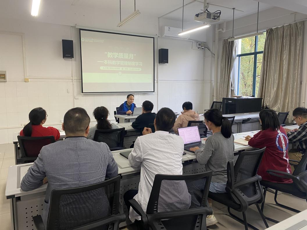 本科教学管理制度的学习对于提升教育教学质量、彰显高校特色具有特殊的指导意义。梁主任就教师在教学工作中容易忽视的问题将本科教学管理制度进行了整理汇总,强调了教师开课前、上课过程中及考试过程中必须注意的事项和应完成的工作。随后,各参会教师对如何提高课堂教学质量进行的深入的交流,形成了讲真话、敢批评的良好教研氛围,增强了教师教学质量意识。