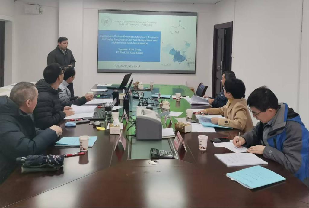 12月11日上午,在屏风校区科创中心519,我院环境科学与工程博士后科研流动站,进行了何妹英、Abid Ullah两位博士的博士后出站考核。考核小组成员由学院相关博导组成,组长由桂林电子科技大学梁英教授担任。