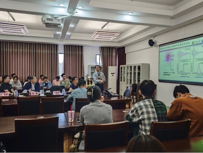 10月29日下午,我院特邀请东南大学生物电子学国家重点实验室徐春祥教授于雁山校区萃华楼12407会议室作题为《低维表界面超快光谱探测》的学术报告会。报告会由张帅普教授主持,我院60余名硕士和博士研究生参加了此次报告会。