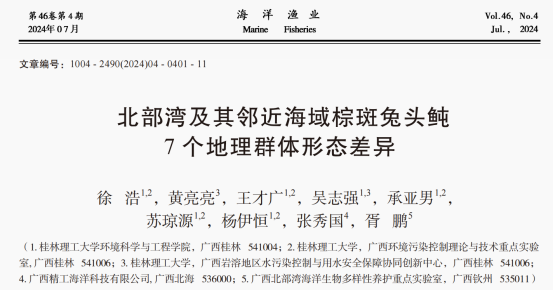 论文推荐│北部湾及其邻近海域棕斑兔头鲀7个地理群体形态差异