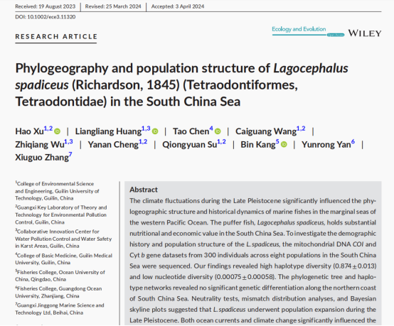 论文推荐│中国南海棕斑兔头鲀的系统发育地理学和种群结构研究