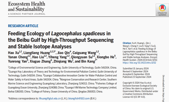 论文推荐│通过高通量测序和稳定同位素技术研究北部湾棕斑兔头鲀的摄食生态学