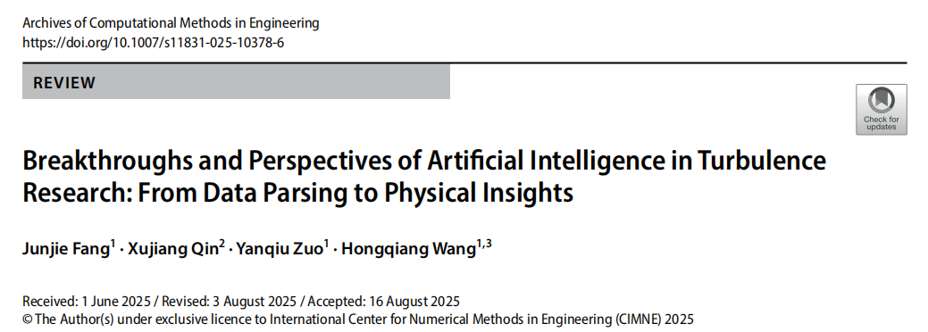 近日,在著名学术期刊Archives of Computational Methods in Engineering上发表题为“Breakthroughs and Perspectives of Artificial Intelligence in Turbulence Research: From Data Parsing to Physical Insights”的综述论文,由我校yL23411永利集团王洪强团队完成。