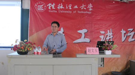 赵教授首先对桂林市的水环境保护现状、水污染存在的问题以及处理技术的总原则和技术路线进行了概述,让同学们初步了解了相关知识。继而,讲解了无机工业废水处理技术研究与工程应用,从二步沉淀法、电镀废水、混凝沉淀法三个方面进行介绍。同时,又对高浓度有机工业废水处理技术研究与工程应用、小区生活污水处理技术研究与工程应用进行阐述,这些新知识不仅拓宽了同学们的眼界,而且也对同学们今后的学习有实质性的帮助。最后,赵教授进行成果总结。