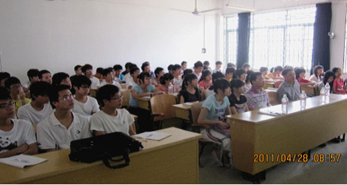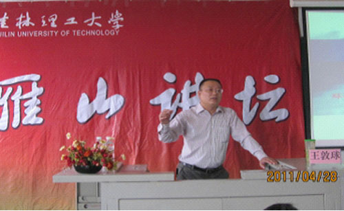 4月28日上午,我院院长、博士生导师王敦球教授在雁山校区05304教室为我院环境工程10级学生做了题为《环境科学与工程专业探讨及就业趋势》的讲座。环境工程教研室主任廖雷教授、副主任肖瑜教授、游少鸿副教授,魏建文博士以及辅导员唐红兵老师出席了报告会。