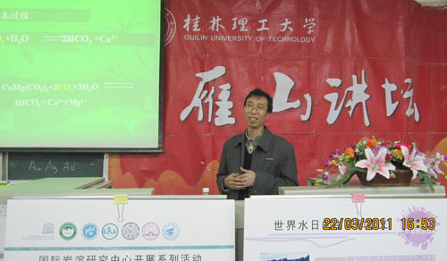 为宣传“世界水日”和“中国水周”,应学校邀请,中国地质科学院岩溶地质研究所曹建华、章程两研究员来我校讲学。3月22日下午,曹建华、章程两位研究员在我校雁山讲坛05307教室先后举办了两场学术报告,相关专业的老师和学生参加了报告会。yL23411永利集团党委副书记周章明主持报告。