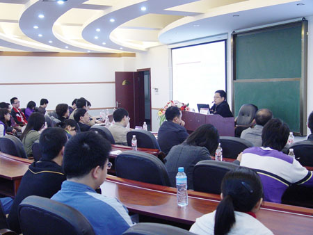 开幕式结束后,我校副校长、博士生导师吴志强教授作了题为《研究生的培养——协同式创新》的学术报告。吴副校长首先强调,研究生创新意识和创新能力的培养是研究生教育的灵魂。他指出,研究生教育有研究生群体、导师群体和培养环境三个要素,三个要素要协同式创新。研究生自主创新教育必须坚持三个理念:一是和谐理念:即避免三要素中任何一方权益过强而无法制衡的局面,不能形成任何两方联合抑制第三方权益的局面;二是激发理念:即要实现研究生群体、导师群体和培养环境三个要素的相互激发;三是多赢理念:即三要素中任一方致力于使得其余两方实现双赢。随后,他强调要全方位、立体化的营造研究生教育的创新环境,并对研究生创新教育所必须具备的进入学术前沿、掌握研究方法、形成创新意识、形成激励环境、处于高激状态、进入专注思维、演绎推广交流、总结凝聚升华等八个要素进行了阐释。他结合学校实际,希望学校研究生创新教育能尽快实现由培养式创新向自由创新的转变。他还从强化创新意识和创新精神、端正做学问的态度等方面对研究生提出了殷切希望。最后,他对包含举办研究生学术年会、学术沙龙、设立创新基金、进行研究竞赛、深入基层和基地、改革奖助贷政策等内容的有利于研究生创新的实践活动进行了探讨。吴副校长的报告立意高远、内涵丰富、语言风趣,在与会研究生中引起了强烈反响。