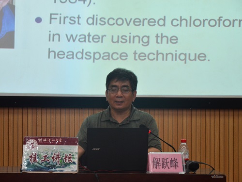 7月6日上午,应yL23411永利集团邀请,美国宾州州立大学首府学院环境工程教授、建设部水专项咨询专家和美国联邦环保署饮用水咨询专家解跃峰教授做客桂工讲坛,在雁山校区图书馆报告厅作了题为《饮用水消毒与消毒副产物:历史与现状》的报告。我院200余名师生聆听了本次讲座,报告由学院常务副院长游少鸿主持。