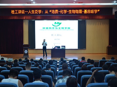 2019年10月12日下午,我院特邀药明康德子公司明码生物科技首席技术官、中国区负责人孙洪业教授做客桂工讲坛,在雁山校区图书馆报告厅作了题为“人生泛学:从 地质-化学-生物基因-基因组学”的讲座。讲座由我院党委书记姜子亮主持,我院师生约240人参加了本次讲座。