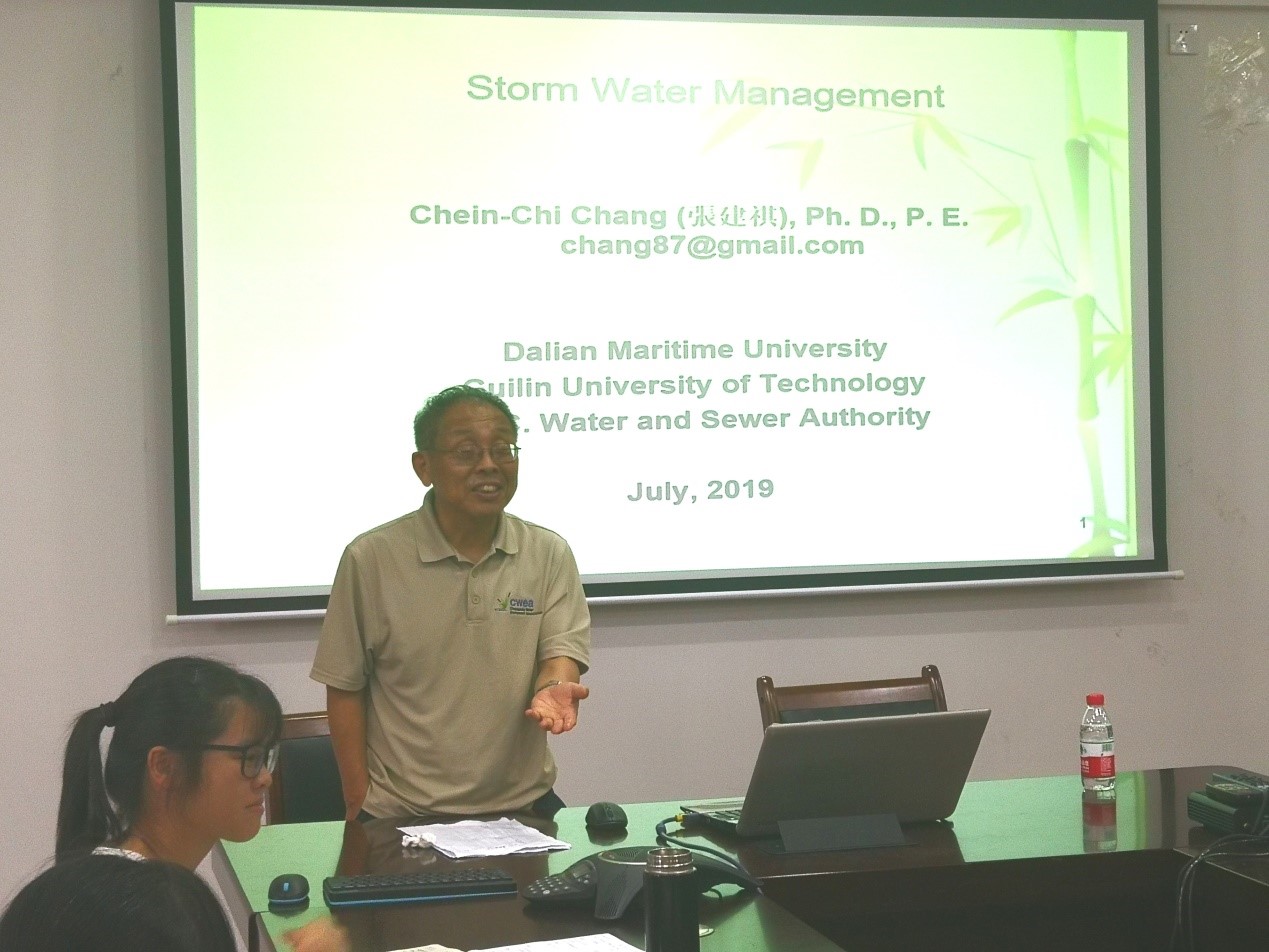 2019年7月2日至5日,我院邀请美国华盛顿特区水务局张建祺(Chein-Chi Chang)高级工程师到雁山校区12407会议室为我院本科生教授了为期四天的“雨水管理”的主题课程,授课对象为环工2018级-实验班全体学生。