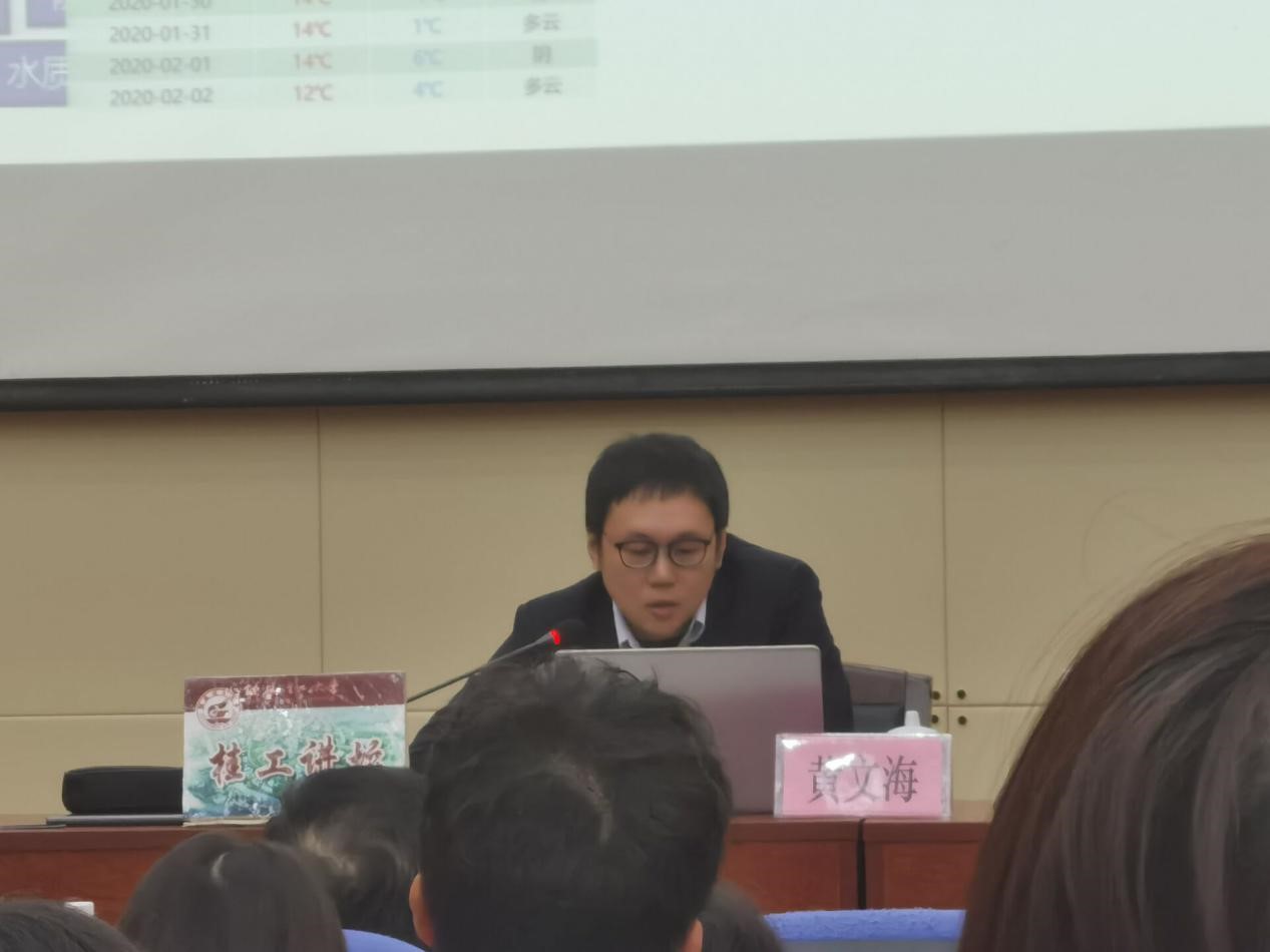 2020年12月06日上午十点yL23411永利集团特邀黄文海副院长在十二栋萃华楼报告厅开展了水务环保项目设计与实施学术报告活动。我院姜子亮书记、部分教师以及研究生、本科生聆听了本次报告。