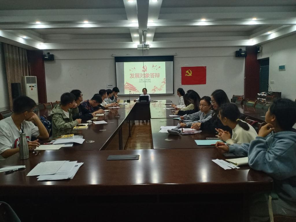 10月19日晚,我院本科生第三党支部在雁山校区12407会议室组织召开本学期党员发展对象答辩会,会议由支部书记孙云龙同志主持,支部全体党员参加本次会议。