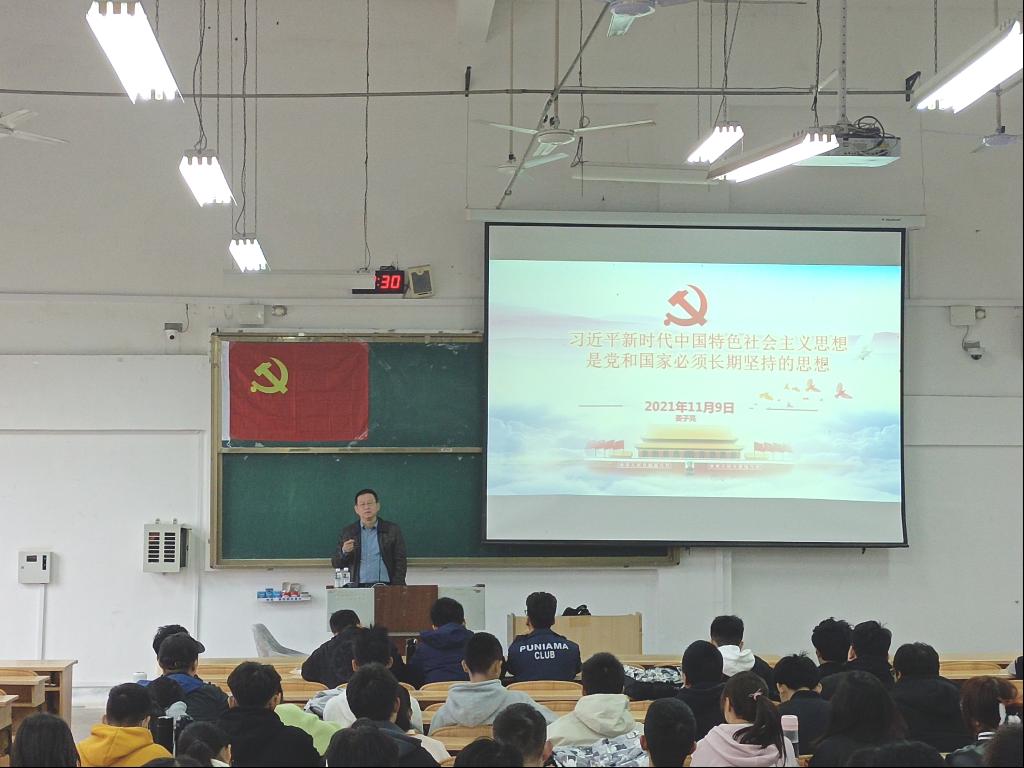 11月9日中午,我院党建办在06207开展入党积极分子培训班第二讲—习近平新时代中国特色社会主义思想专题党课。本次党课由学院党委书记姜子亮主讲。