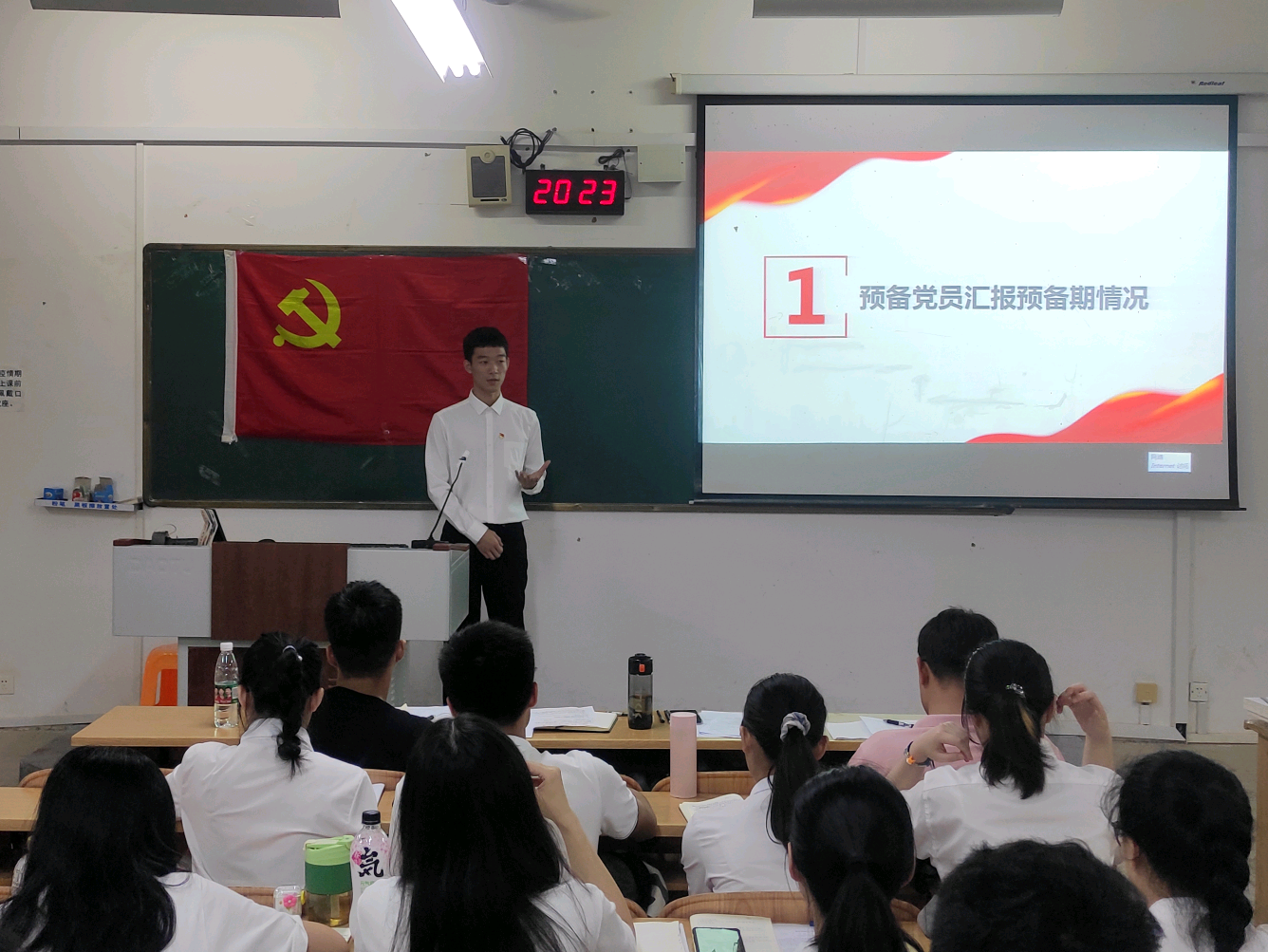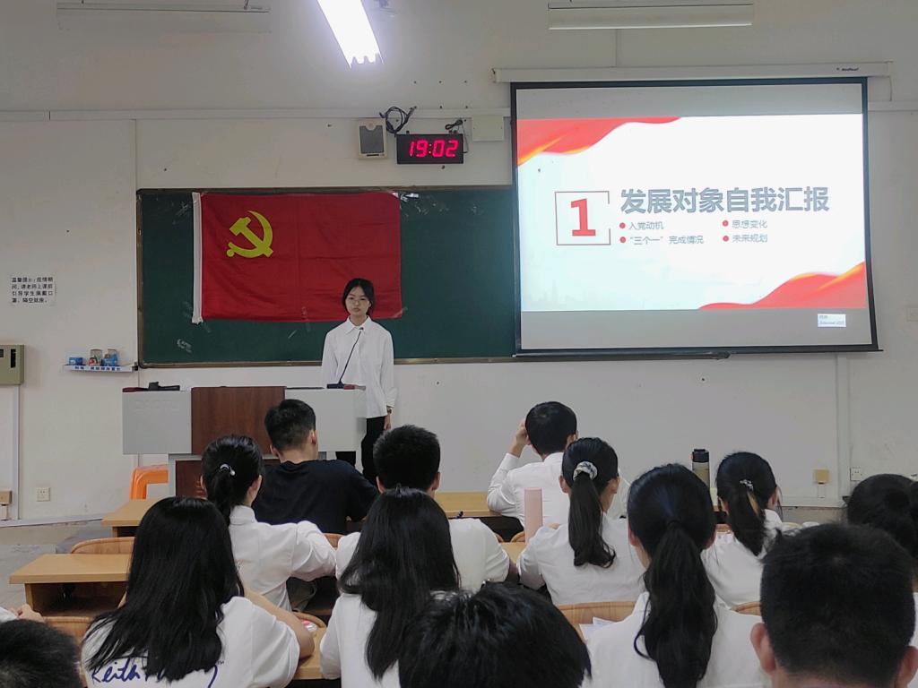 会议开始,支部组织委员就转正及转预备流程进行简单介绍。会议第一项,由发展对象从入党动机、思想变化、"三个一"完成情况、未来规划等方面总结个人在发展对象考察期间的进步和不足。培养联系人就考察期间入党申请人的表现以及个人意见做阐述。在讨论发展对象转预备问题后,大会开展第二项议程,讨论预备期满的预备党员转为正式党员的问题。