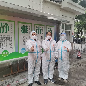 面对桂林突发的新冠疫情,为全力守护广大师生的身体健康,环境学院教工第三党支部于晓章,魏建文,蒋金平,张文杰等教师本着“疫情就是命令,防控就是责任”作为初心和使命,不惧风险,奋勇“逆行”,舍“小家”,顾“大家”,积极响应国家和学校号召迅速投入到一线防控工作中。他们穿戴好防护用品,有序投入到防疫宣传、人员登记、体温测量、信息收集、人员隔离、秩序引导、分类筛查及生活必需品代购配送及上楼送餐等疫情防控措施和活动中。他们不辞劳苦,用实际行动积践行党员的先锋模范作用,为师生们生命安全和身体健康保驾护航。