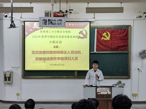 5月13日晚,管媒学院、测绘学院、艺术学院、商学院与环境学院各发展对象小组分别在05301、05302、05303、05304、05306教室开展2023年秋季学期党员发展对象 “党员发展对象如何端正入党动机,积极创造条件争取早日入党” 小组讨论课。本次活动由我院党建办办公室主任杨平平老师负责,各小组组长担任主讲人。