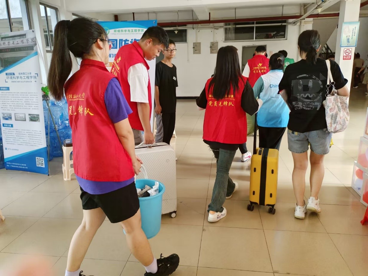 在迎新工作中,我院党员同志充分发挥党员先锋模范作用,在迎新接站、行李搬运、宿舍引导、咨询服务与手续办理等流程中为新生们提供热情的服务。