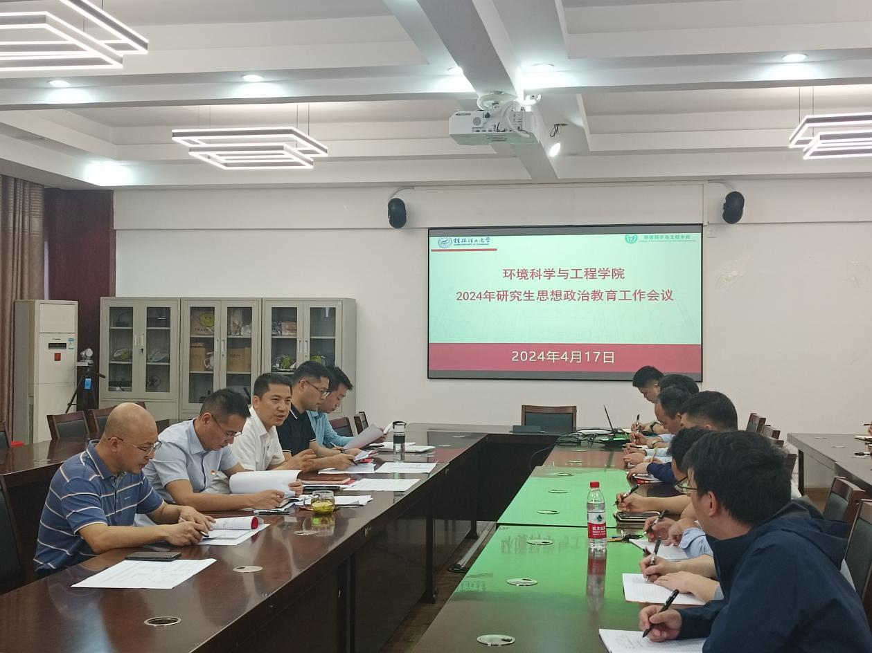 为了加强和改进研究生思想政治教育工作,不断提高研究生思想政治素质,全面提升研究生培养质量。4月17日,我院在雁山校区12407会议室召开党委(扩大)会议,专题研究2024年研究生思想政治教育工作。会议由学院党委书记代武社主持,学院党委班子成员、党政办主任、学工组长、团委书记、研究生党支部书记参加会议。