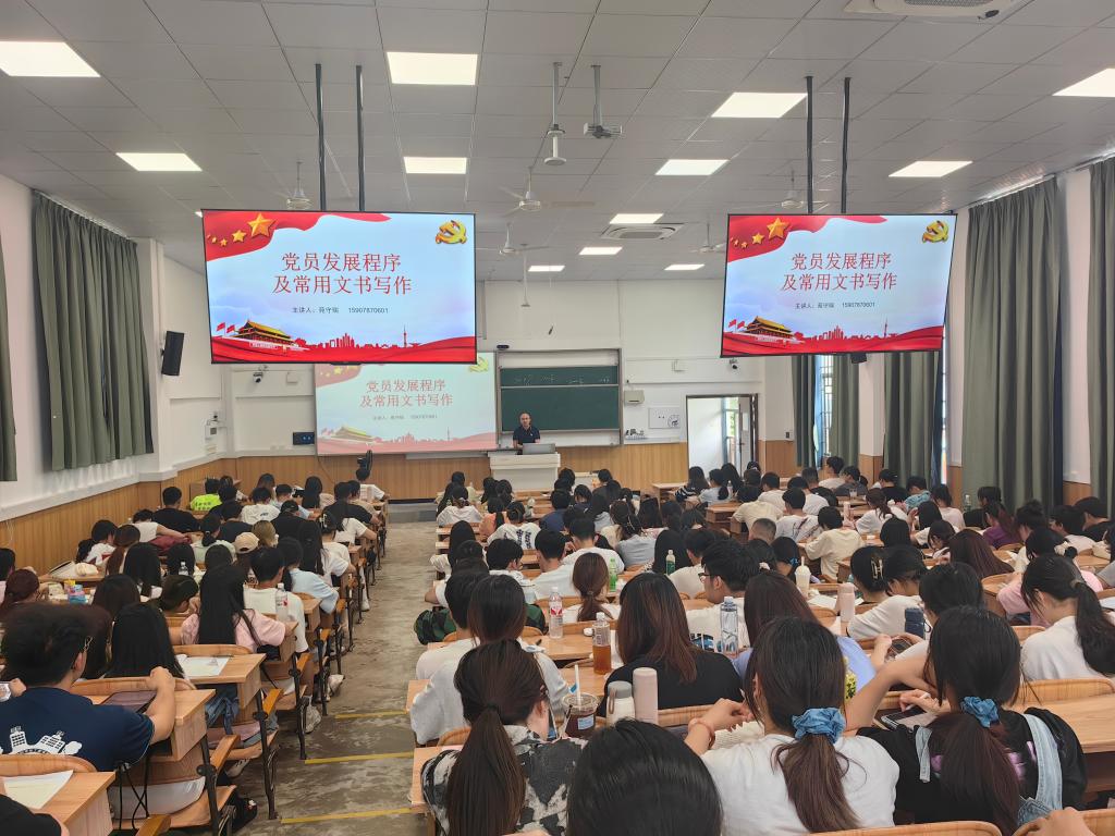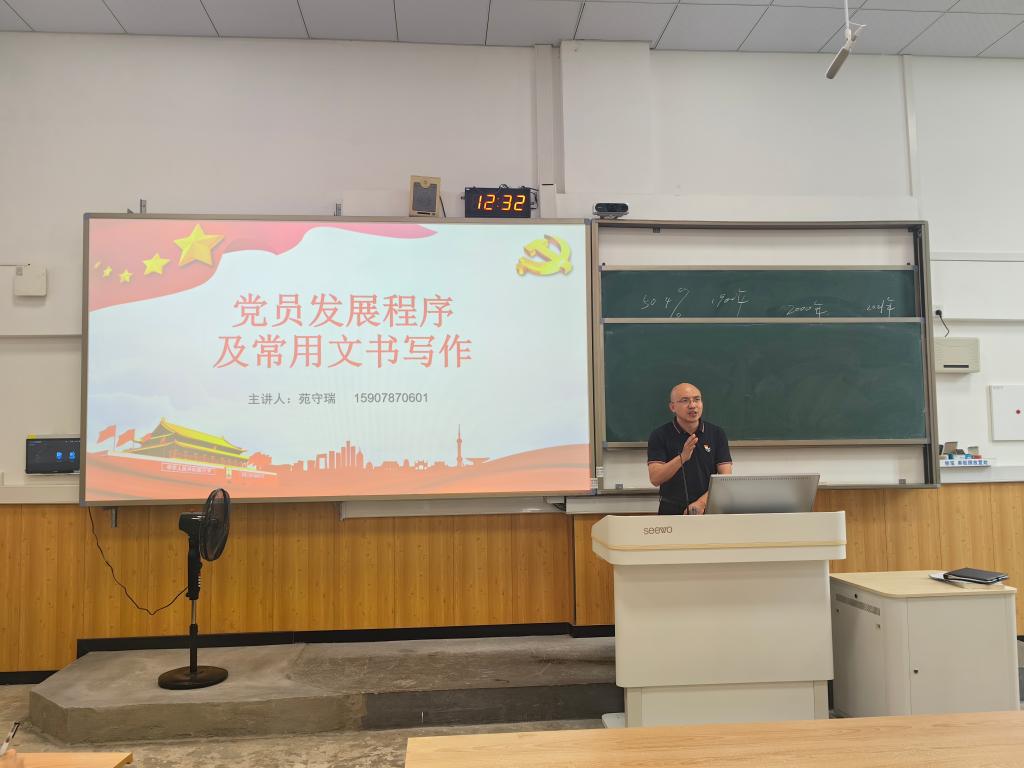 党课上,苑守瑞从“发展党员工作的意义及总要求”“党员发展程序”“党员发展过程中的常用文书写作”和“党员发展过程中的表格填写”四个方面对党员发展程序、入党申请书、思想汇报、自传、入党志愿书、转正申请书、综合性等政治审查材料的文书写作细节和注意事项进行了详细解读与辅导。