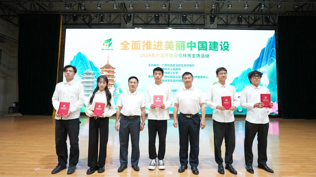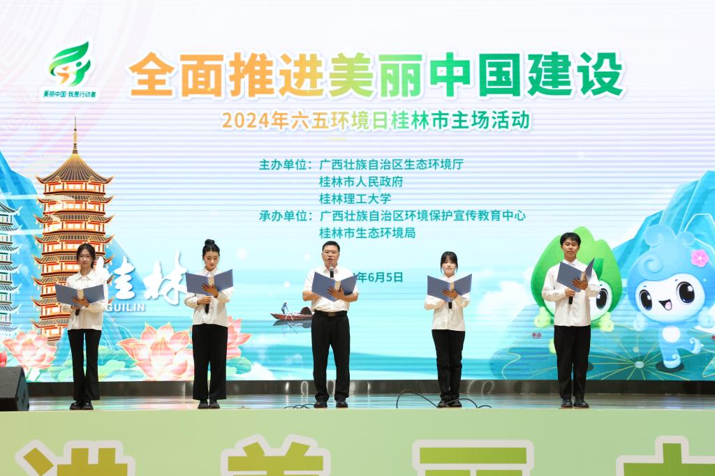 在第53个世界环境日到来之际,6月5日上午,由自治区生态环境厅、桂林市人民政府、永利yl23411集团主办的全面推进美丽中国建设——2024年六五环境日桂林市主场活动在我校雁山校区综合体育馆举行。桂林市人民政府二级巡视员周作智,我校校长王敦球,党委常委、宣传部部长叶昊,桂林市生态环境局局长张晓阳,自治区桂林生态环境监测中心主任蒋永光出席活动,桂林市相关部门负责人,有关企业代表,获奖代表,我校相关部门负责人、师生代表,媒体记者,桂林市环保社会组织、环保志愿者代表约350余人参加本次活动。