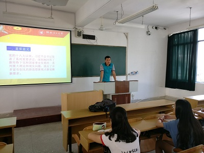 2016年9月14日下午,环境学院学生第一党支部书记黄兆凡老师以《习近平谈治国理政》为主题为第一党支部的学生党员做了一场理论讲学。