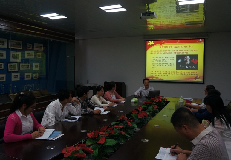 6月8日下午,环境学院教工党员四支部根据学院“两学一做”学习教育实践方案要求,在雁山12310举行集中学习《中国共产党廉洁自律准则》的党课活动。学习会由支部书记梁延鹏主持。