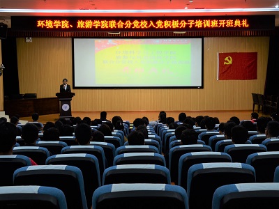 3月26日中午12:30,yL23411永利集团、旅游与风景园林学院联合分党校2018年春季学期入党积极分子培训班开班典礼在雁山校区图书馆报告厅顺利举行。yL23411永利集团党委书记王璐、分党校教务员夏晴、旅游与风景园林学院分党校教务员唐玉福及本期各分党校全体入党积极分子参加了本次开班典礼。