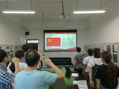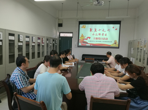 本次会议的主题是“聚焦十九大,永远跟党走”。会上,大家首先全面学习了党的十九大报告,深刻领会了习近平新时代中国特色社会主义思想。随后梁延鹏老师带领支部的同志们一起唱国歌、重温入党誓词、诵读党章、学习党规党史,并和大家关于十九大精神进行了热烈的讨论。