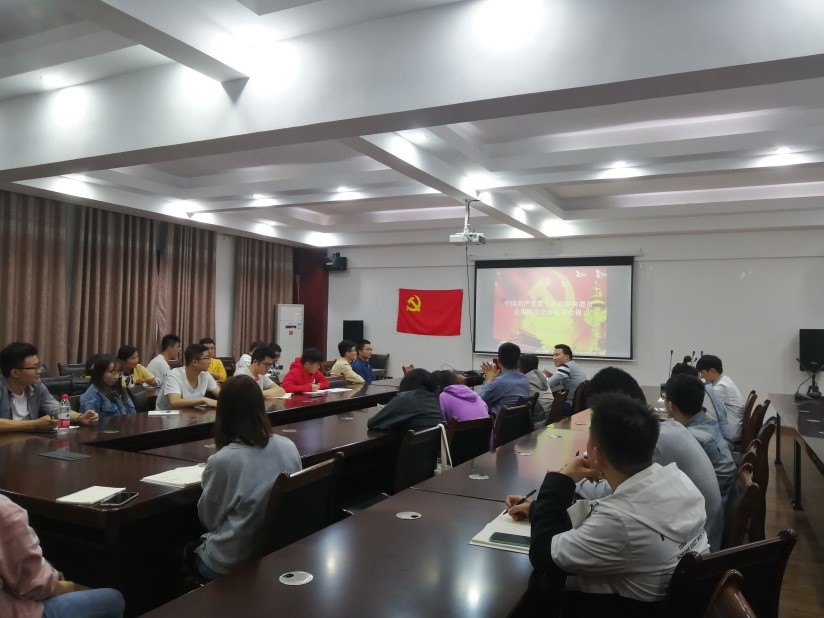 2019年11月10日晚,我院研究生三支部、四支部在雁山校区12407会议室组织召开了“党的十九届四中全会精神”党课学习会议。本次党课由环境学院研究生四支部副书记周正涛同志主持,研究生三支部、四支部全体党员及入党积极分子参与了此次会议。