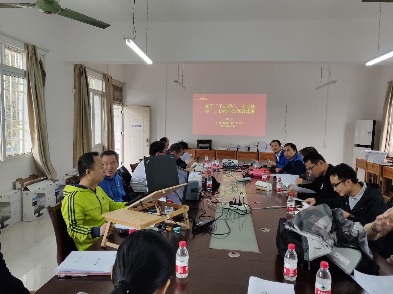 为了落实“不忘初心、牢记使命”主题教育检视问题的整改措施,2019年11月16日上午,环境学院教工第三党支部在屏风校区12306召开支部党员大会,覃礼堂同志主持会议,环境工程教研室全体教师(包括支部党员)参加本次会议。参会人员针对主题教育活动中所检视的问题,研讨整改措施并形成整改方案。
