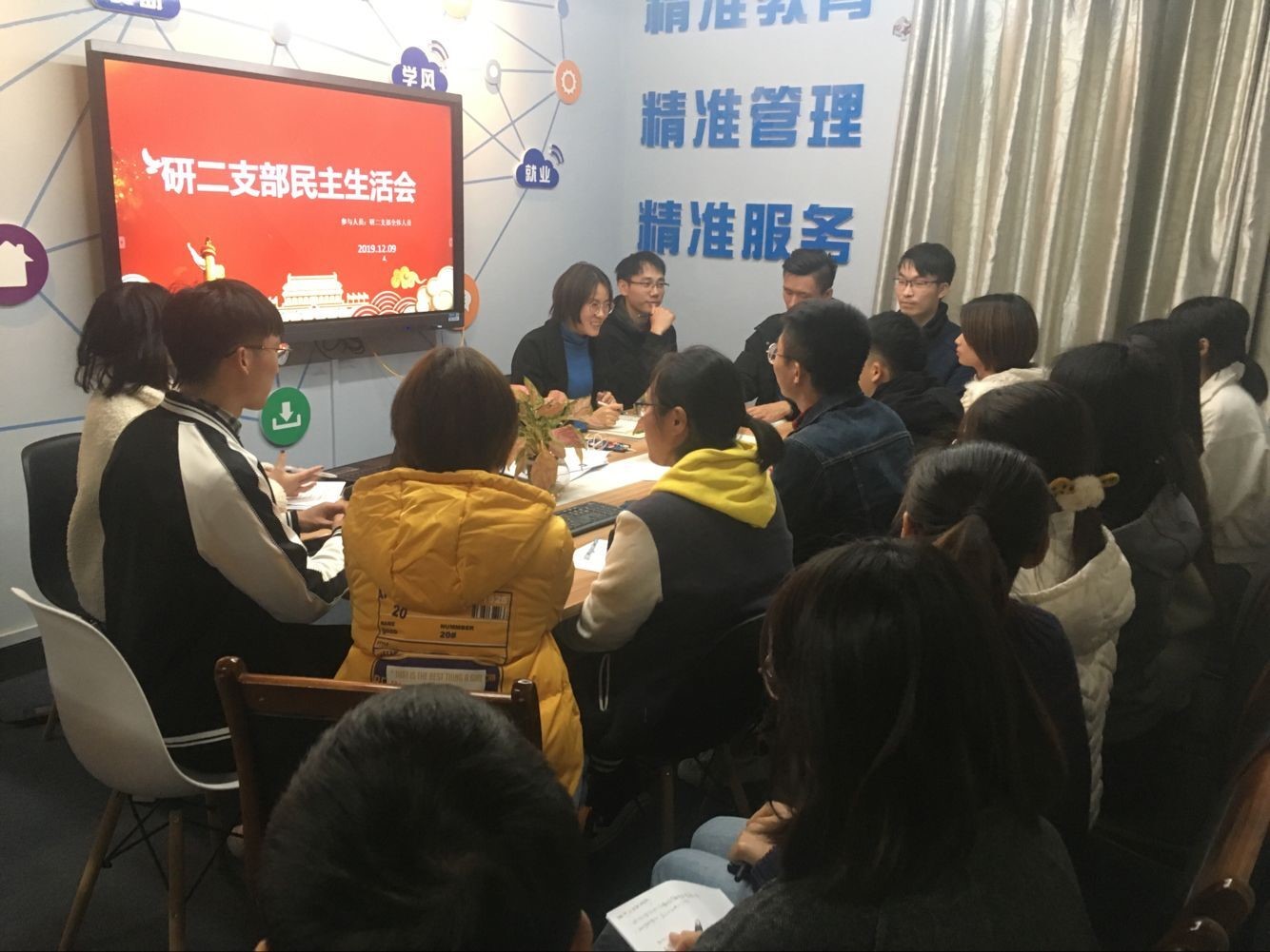 根据学校要求及支部工作安排,12月9日,我院研究生二支部在雁山校区12408会议室召开“不忘初心、牢记使命”主题教育专题组织生活会暨民主评议党员大会,会议由研二支部副书记刘洁雪主持,研二支部全体党员参加。