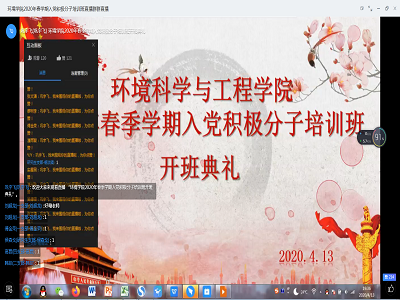 4月13日,我院2020年春季学期入党积极分子培训班开班典礼通过线上钉钉会议举行。我院党委书记姜子亮、副书记郝文佳、全体辅导员及本期全体入党积极分子参加开班典礼。本次开班典礼由兼职辅导员巩宇飞老师主持。